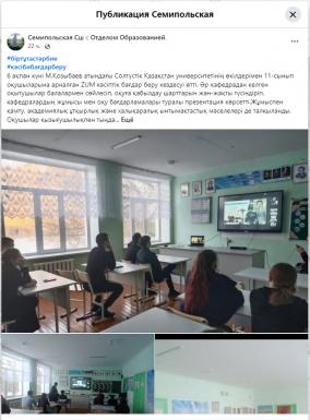 6 ақпан күні М.Қозыбаев атындағы Солтүстік Қазақстан университетінің өкілдерімен 11-сынып оқушыларына арналған ZUM кәсіптік бағдар беру кездесуі өтті. Әр кафедрадан келген оқытушылар балалармен сөйлесіп, оқуға қабылдау шарттарын жан-жақты түсіндіріп, кафедралардың жұмысы мен оқу бағдарламалары туралы презентация көрсетті.Жұмыспен қамту, академиялық...